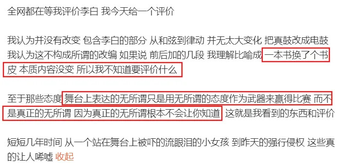 他介意的除了侵权问题,更有对单依纯改编版本的不理解、不认同、不喜欢。