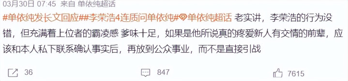 支持单依纯的人,则反过来攻击李荣浩的表达方式。