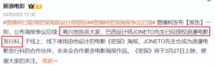 不久前,贾樟柯就刚刚经历了这么一遭,误发了未经授权的海报之后,才匆匆补了授权。