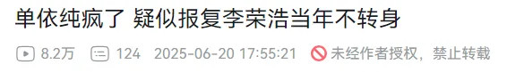 这使得舆论彻底失控,单依纯遭全网围剿的同时,质疑李荣浩的声音也涌现……