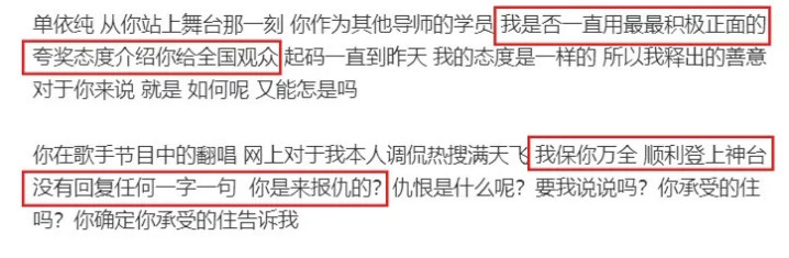 但还是隔空喊话,宣泄不满「单依纯我的私信被骂成什么样言语之恶毒我就不给你公开展示了」。
